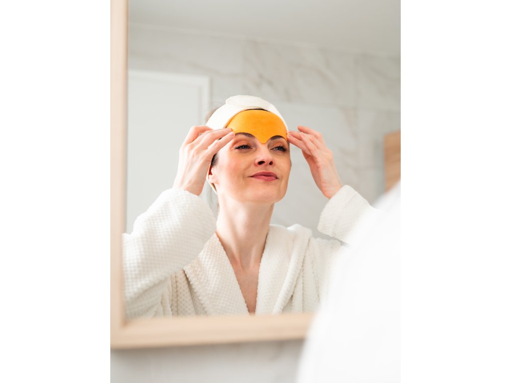 Apply the mask to your skin with the white side, so the colored side faces away from your skin. Press lightly.