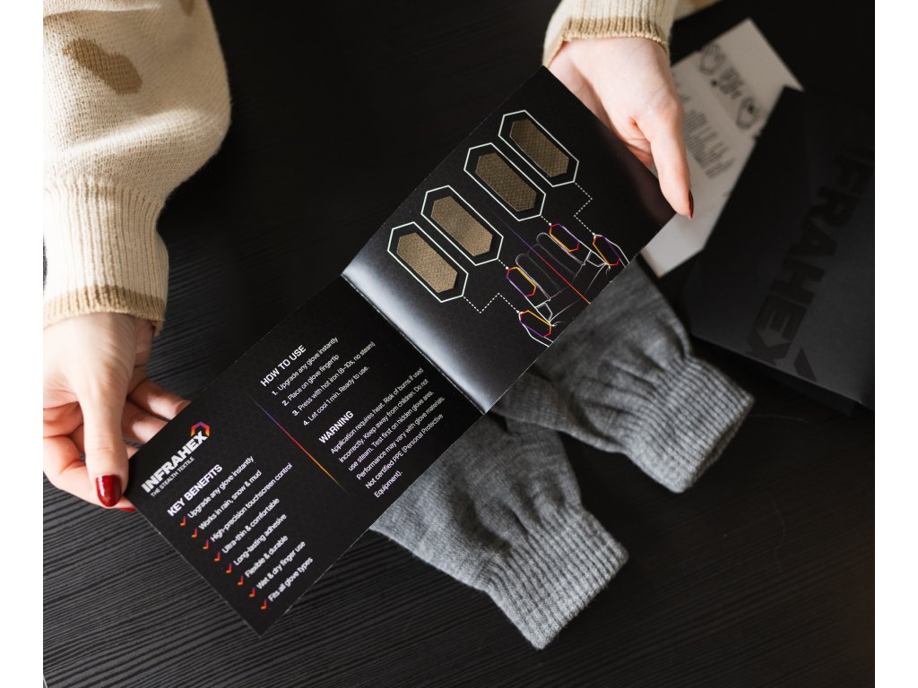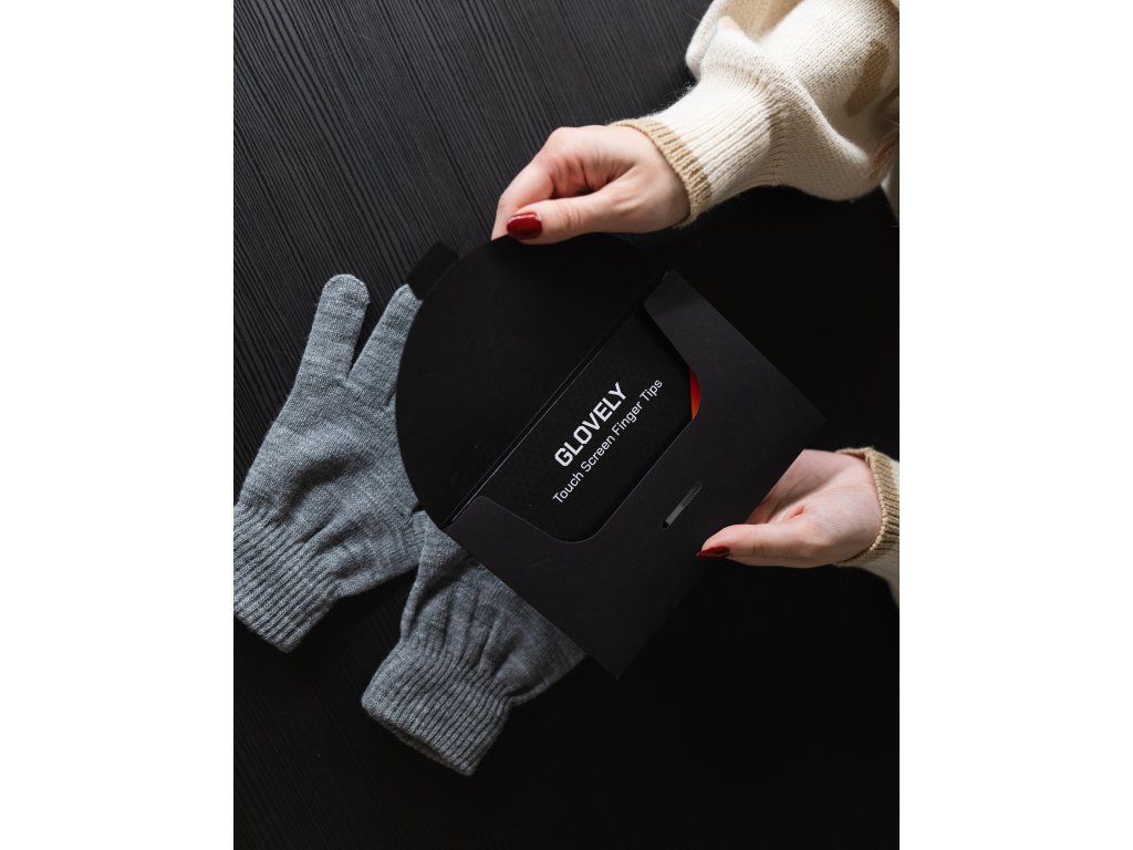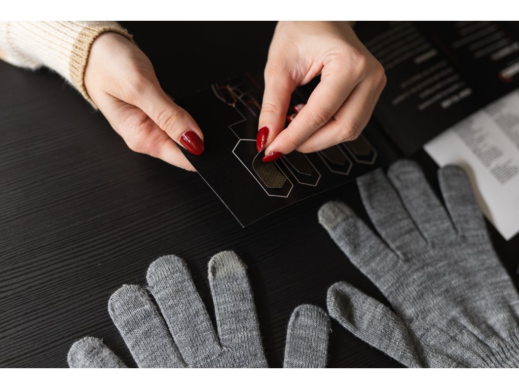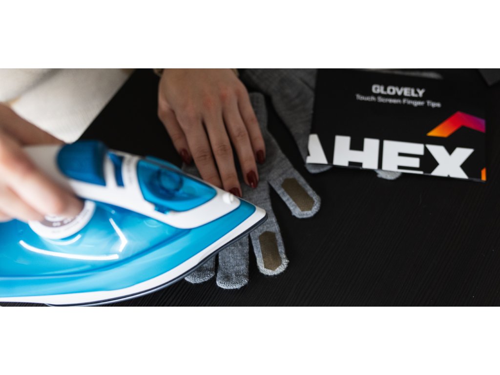 Any gloves → smart gloves with touch screen. Simple, fast and for a few euros - and still stylish and practical. No more cold fingers when using your phone outdoors, no more compromises between warmth and functionality. GLOVELY is a smart, cheap and fun accessory that makes it easy to capture everyday winter joys without taking off your gloves. GLOVELY are ultra-thin ironing aids with a conductive layer that just need to be ironed on the thumb and forefinger - and in a few seconds you are ready to tap and pull.